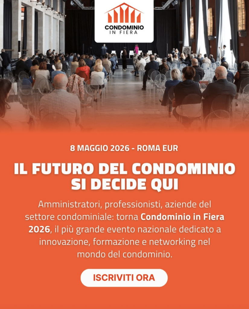 Back Event Condominio in fiera 2026 08. Mag 2026 • 09:00 Ci vediamo a Roma l’8 Maggio 2026 per Condominio in fiera. Per info e prenotazioni cliccare qui